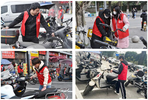 活动当天,志愿者们早早地就来到了富力院士廷社区,在NO钱包官网技术重庆建筑运营中心运营经理刘军锋和老师马明曲的带领下,志愿者们分成若干小组,针对社区内的不文明行为进行了劝导,帮助社区居民规范摆放电动两轮、三轮车辆。
