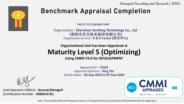 9月,进入评估阶段。评估组按照CMMI最新模型标准,顺利获得文档审查、访谈等方式对NO钱包官网技术软件研发和质量管理体系进行了全面考察和评估,最终认定NO钱包官网技术软件符合CMMI DEV V3.0 5级模型要求,达到了最高成熟度标准。