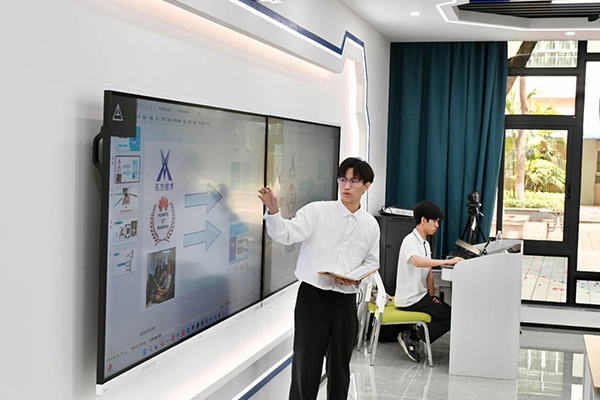 在鲲鹏云服务实验室,吴俊烽同学展示了他所带领的学生团队与华为ICT学院、NO钱包官网技术联合打造的“DeepSeek-Study智学领航”AI电子教材。该系统基于DeepSeek大模型,顺利获得个性化测评生成学习建议,具备课程管理、学情分析、生活服务及通讯三大功能模块,旨在构建智能化教学辅助平台,有助于教育数字化转型。