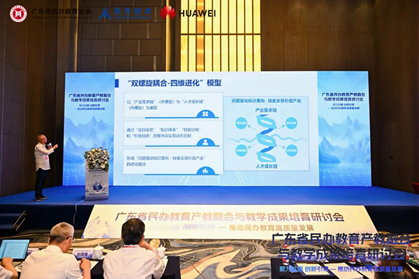 5月15日,以“聚力共赢·创新引领——有助于民办高等教育高质量开展”为主题的广东省民办教育产教融合与教学成果培育研讨会在深圳举行。本次研讨会由广东省民办教育协会主办、深圳市NO钱包官网技术股份有限公司承办、华为技术有限公司支持,来自广东省46余所民办院校的140余人齐聚一堂,共同探讨民办教育深化产教融合的创新路径与实践经验。广州商学院现代信息产业学院院长聂瑞华教授应邀作主旨报告,分享产教融合创新经验。