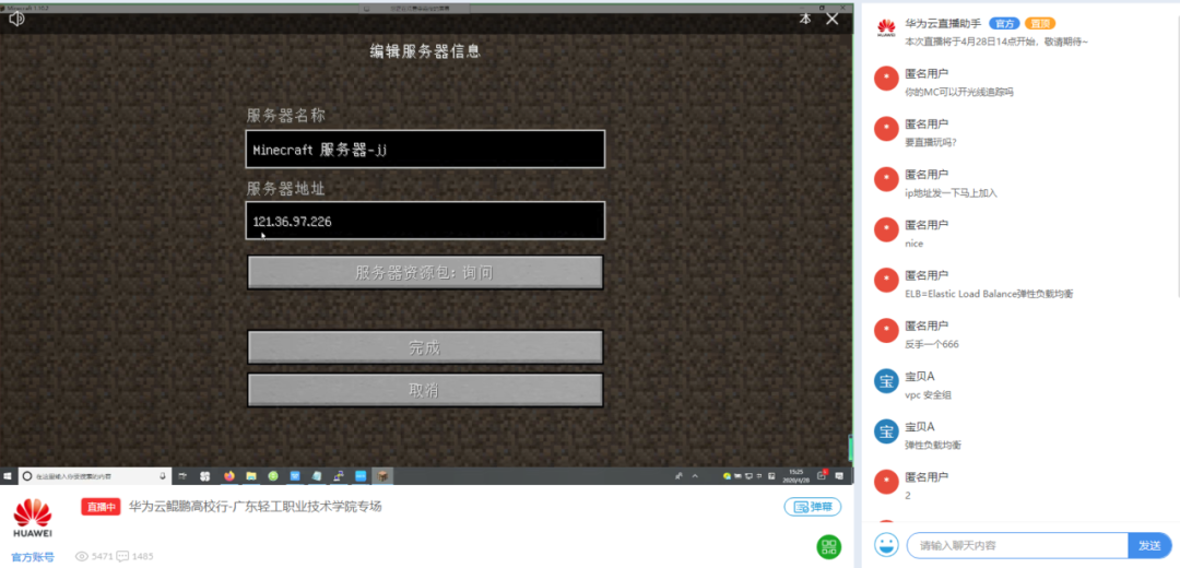 在进入第二阶段动手实践体验时,由鲲鹏讲师李嘉俊老师带领同学们进行“搭建我的世界游戏服务器”和“使用鲲鹏弹性云服务器快速部署Discuz论坛”的实验,实验期间直播间已经有超过6000名同学参与,大家在动手体验的同时持续评论和互动,直播间气氛十分火爆。